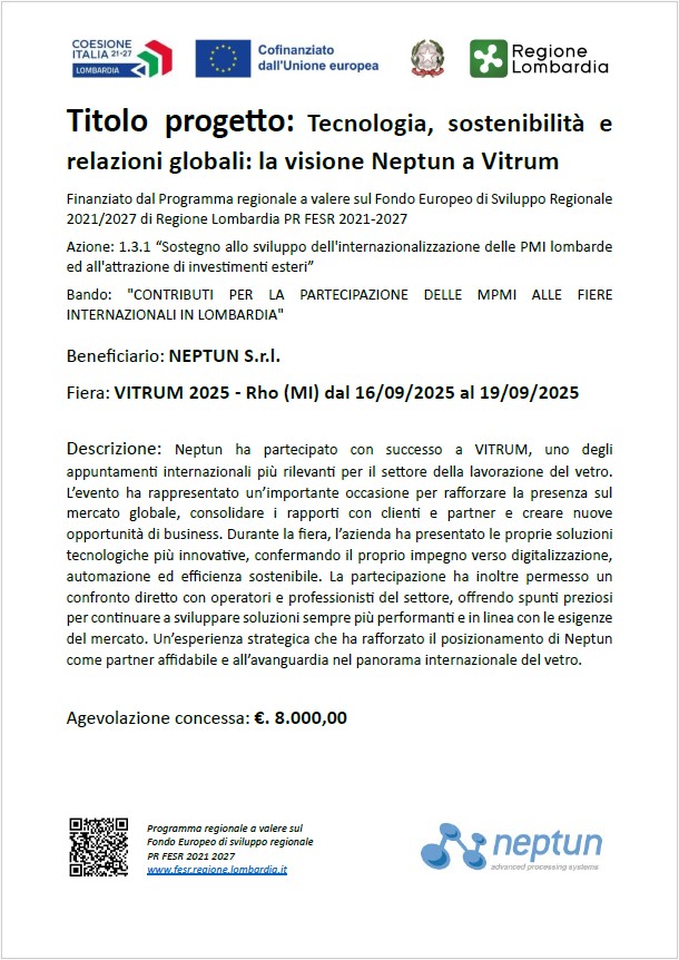 La Neptun ha sempre creduto nel valore della fiera Vitrum, e ha voluto scommettere anche quest’anno presentando ben quattro macchine in funzione.
